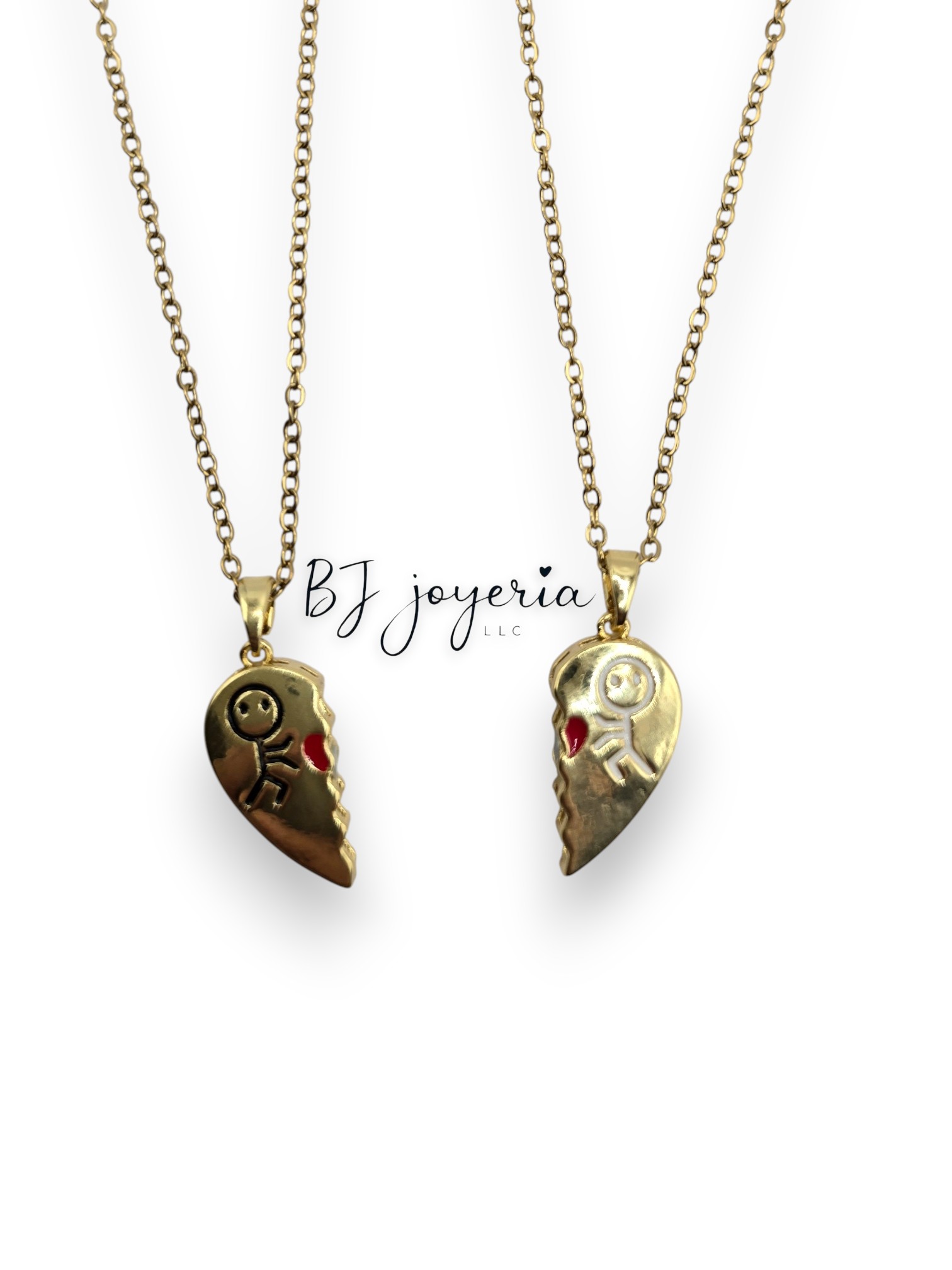 They are two chains with a pendant, with a magnet to connect them.